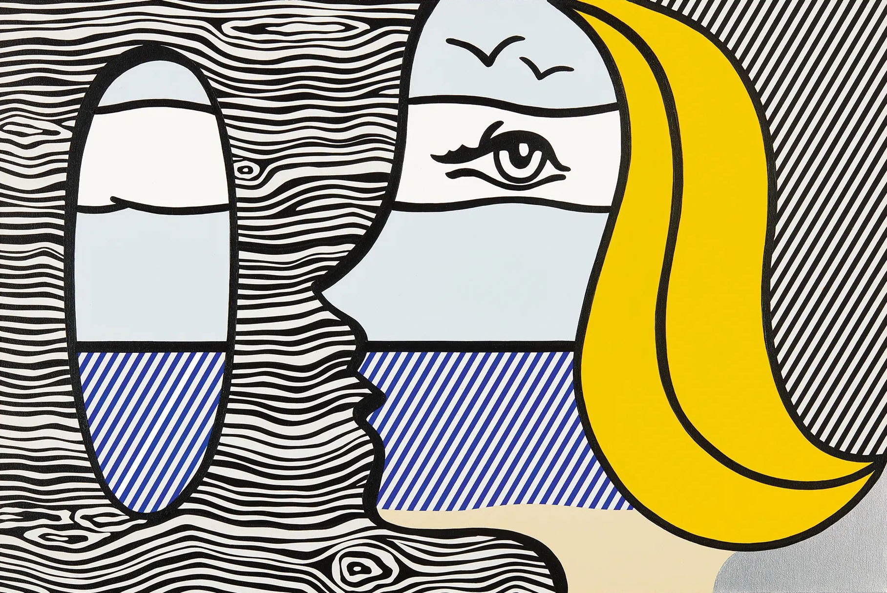 JMG : I did some research to find out which artists had been to Porquerolles. We are showing paintings from the late 19th century by Jean-Francis Auburtin and Henri-Edmond Cross. The latter's masterpiece, Les Îles d'or, now at Orsay, returns for the first time to the place where it was painted. We also present photographs by Bernard Plossu, taken in the 1960s. These works, which open the exhibition, maintain a link with the outside world. Tony Matelli's little flower, which grows inside the first room, gives the impression that the botanical garden, visible through the bay windows, seems to be entering the house. A painting by Roy Lichtenstein, depicting the sea and a woman's face, also blurs the boundaries. In 2023, artist Giulia Andreani reproduced one of the island's earliest postcards in watercolour, using Payne grey. This shade was invented in the 18th century to approximate the cast shadows of dusk and dawn. The fragility of nature is evoked on this floor. A staircase leads down to the invisible part of the museum, dug entirely out of the ground. This underground space reveals worlds more detached from reality.