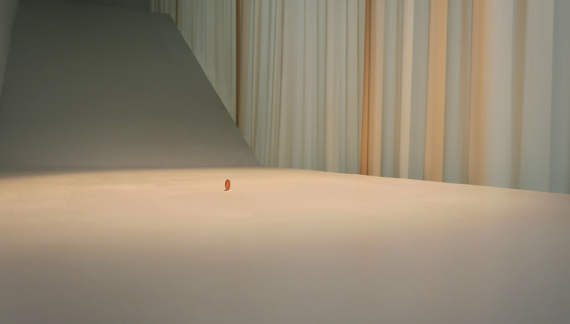 Vous avez été récompensée du Prix Région en 2021, avec une installation au nom très « Bob Wilsonnien » (What is on the other side of gold is the same as what is on this side). Que pouvait-on voir ou ne pas voir dans ce décor représentant un rideau, des gants et un porte-serviette ?