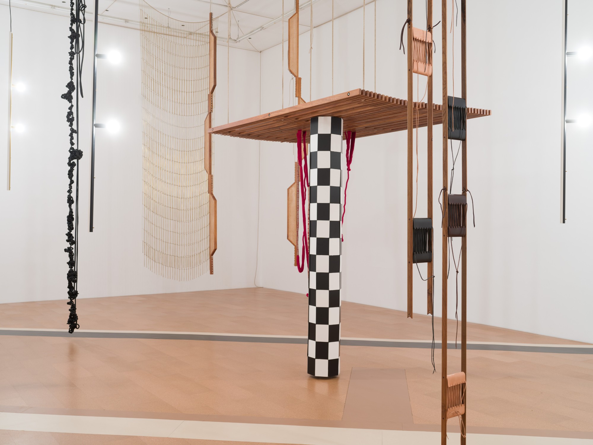 Portuguese artist Leonor Antunes takes over the vast spaces of CRAC Occitanie with around forty sculptures, either newly created or reconfigured specifically for the site. Drawing inspiration from often-overlooked or marginalized female figures in the history of architecture and design—such as Sadie Speight—as well as from Bauhaus principles, she pays particular attention to materials (rope, brass, leather, blown glass) and craftsmanship. Suspended, modular, or anchored to the ground, her works form an ethereal environment where remembrance, abstraction, and poetry intertwine.
