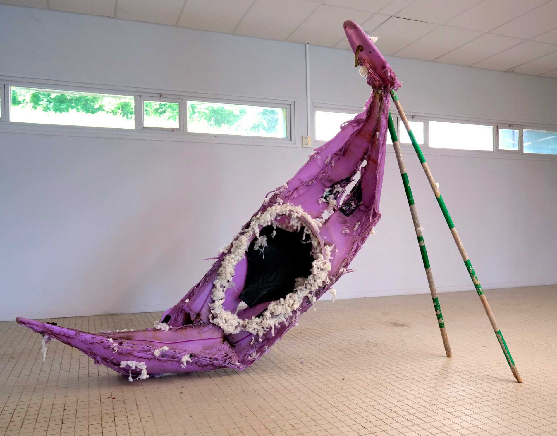 Ten years after his first solo exhibition, David Posth-Kohler brings together at Les Capucins a range of sculptural gestures—those of the tinkerer, the blacksmith, the puppeteer, the ceramist, and the costume maker. He creates assemblages of composite figures set within domestic architectures; their silhouettes form multiple bodies, at times caught in irresistible dances, at others absorbed in deep concentration.