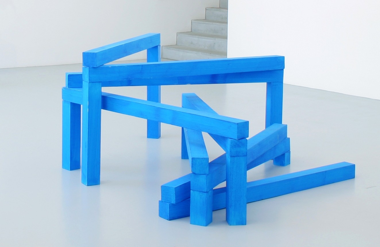Brought together for the first time for this exhibition, the works of Nassos Daphnis and Rita McBride — two American artists seemingly distant in time and practice — resonate together within a shared space, at the boundary between functionality and poetry, between authority and freedom.