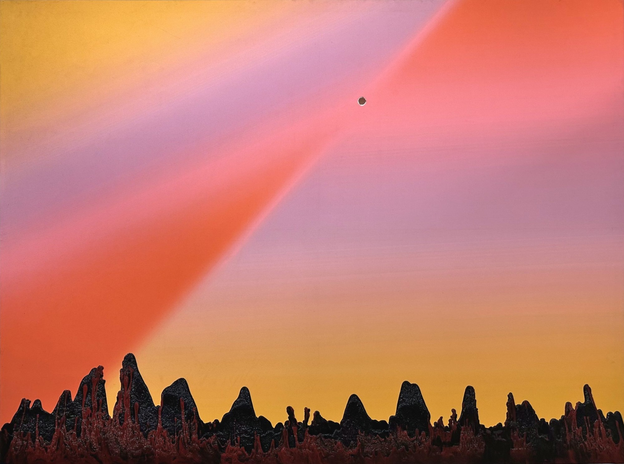Conceived as a “hike,” the exhibition echoes his close relationship with the landscapes of the Alpes-Maritimes. Recent series explore the tension between abstraction and representation through experimental techniques: ink poured onto tarpaulin, burned canvas, stretched pixels, layers of lacquer dripped onto stacked screens, or inverted frames. Joined by Suska Bastian, Arnaud Biais, David Raffini and Christian Vialard, the artist extends this sensitive wandering, where landscape becomes a pictorial experience and a transformation of reality.