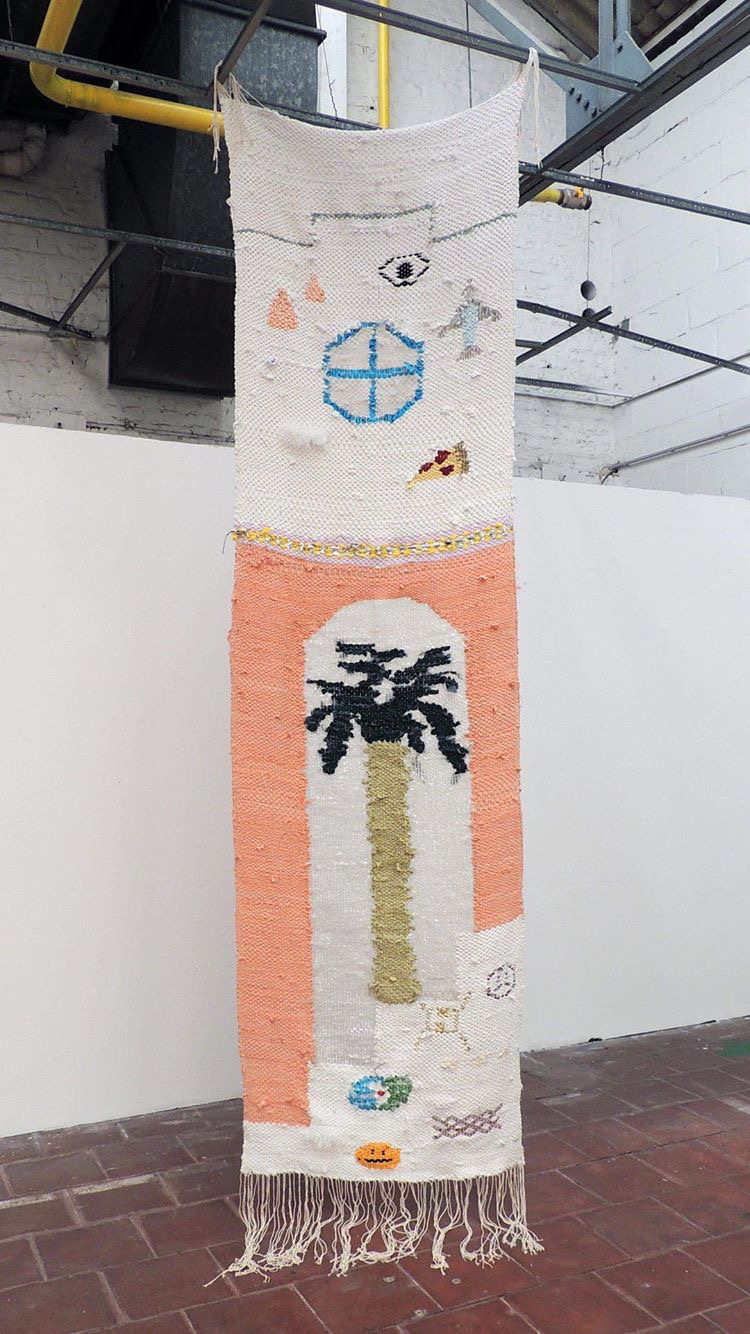 DD : Non, justement, lors de mes résidences, j’ai développé une manière de tisser différente sur des surfaces qui me permettent de réaliser des pièces plus grandes et plus libre dans le dessin. Il m’arrive cependant aussi d’amener avec un petit métier à tisser, qui se loge parfaitement dans ma voiture.